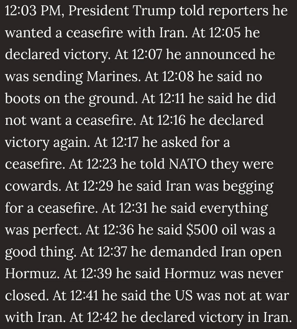 >>531727706Trump is literally destroying the world to protect the Epstein class and create the Greater Israel Project and rightoids are still acting smug
