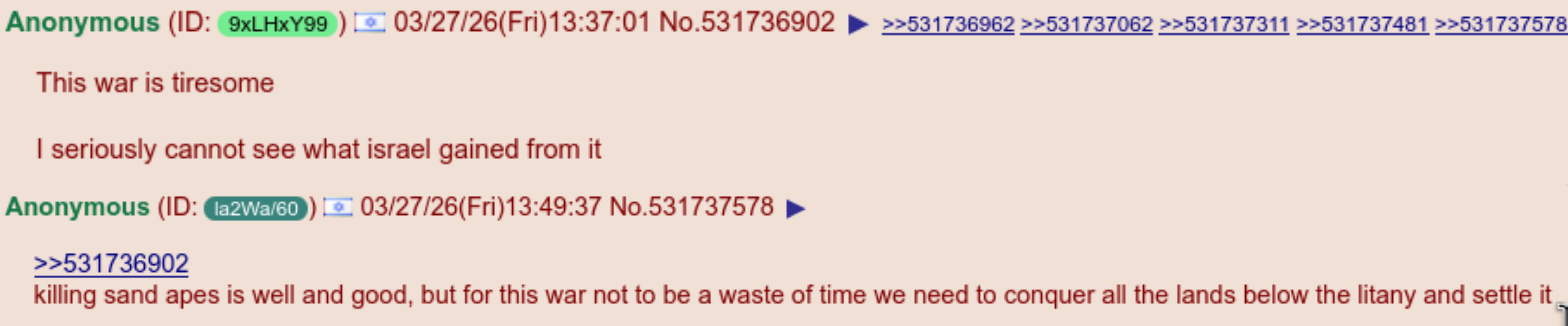 you have to consider that governments are many different people, different agencies, and they often violently disagree with each other, especially in the US and Israel, whose governments are also riddled with traitors, criminals, and foreign agents, who continually stir shit. part of the process of war is resolving internal conflicts as well as external conflicts. mossad had been infiltrating and plotting the overthrow of Iran for decades, and so this faction was internally very powerful, but now they tried, got btfo, and lost all their assets, so now their voice is zero and they are irrelevant. all part of the process.
