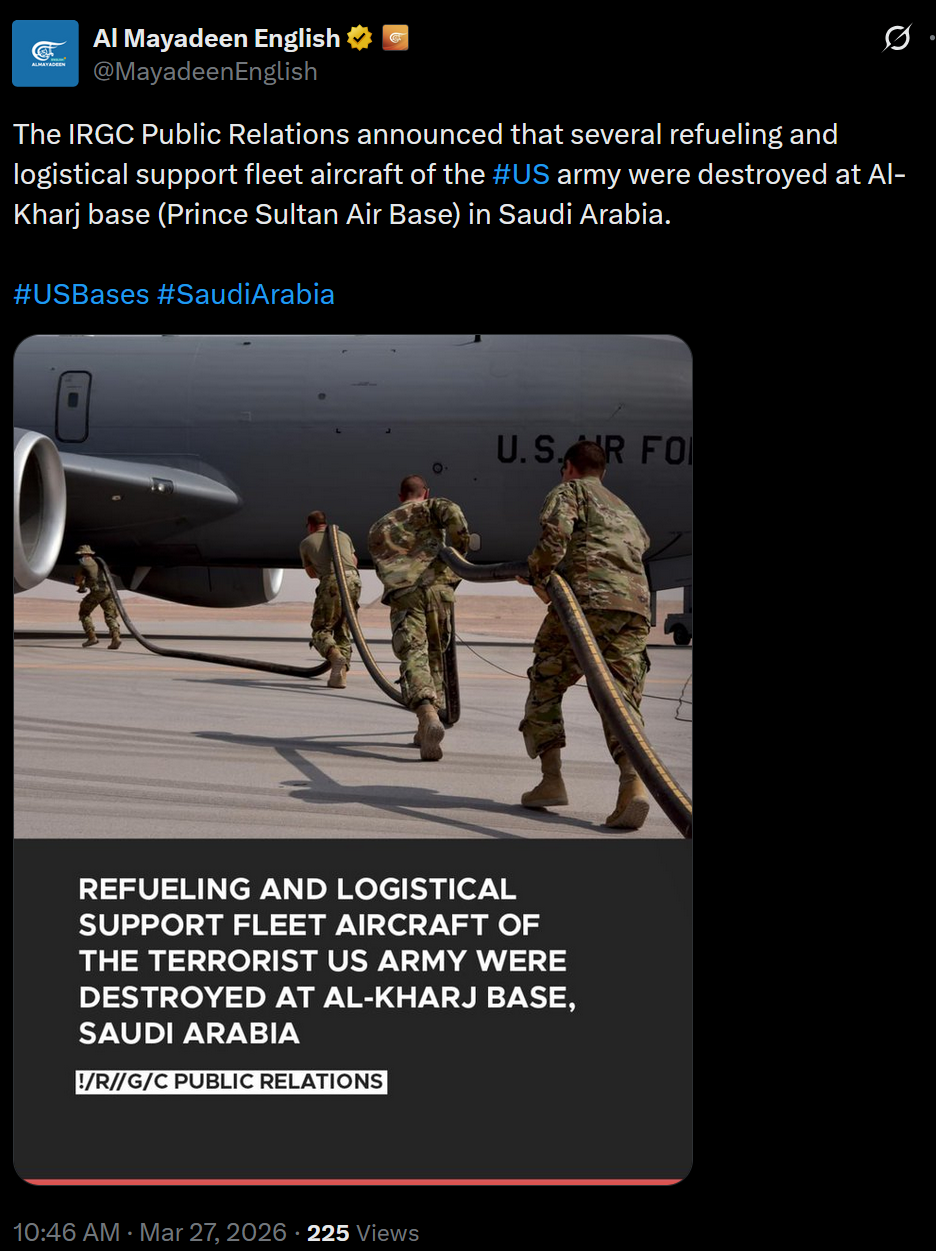 Cope harder, they are claiming a new attack on Prince Sultan Air Base today