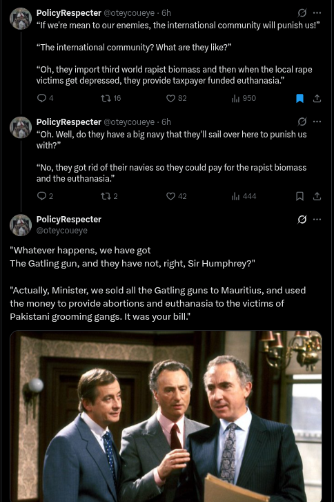 >>531760176>Allied Natives might have to reopen the strait.They already can. Let me pantomime how."HALLO THIS IS MACRON, I PUT DOWN LE DICK AND PICK UP LE PHONEHONHON TO CALL AYATOLLAH CARDBOARDI JR AND SAY WE WILL PAY IN LE YUAN""GUTEN MORGEN ZIS IS MERZ, I HABE SNACKENEATEN MY MORNING POOPENFARTEN FROM ZE HOMOSEXENPROSTITUTEN AND VILL PAY FOR SCHIPPINGTRANSPORTENDUNGEN IN YUAN""TALLULAHTALLEYLEY OIM DON YANKIN MY SHILLELAGH AND SLAPPIN ME WOIF AND AM GONNA PAY FOR THE SHIPPIN IN THE CHOINESE MONEY TO BE SURE TO BE SURE"Losing the petrodollar while being taken over by mexico one halfbred mutant muttbaby at a time isn't gonna go the way you think.