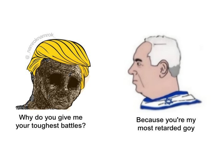 >>531761794>We do and say what we want, the world kneels.I think you mean we do and say what Israel wants and we don't care what our own population says about it. As much as I'm all for America saying fuck you to everybody, this Trump government full of Jews is throating Israeli schmeckle so hard it's coming out their ass. Kill yourself if you find a way to rationalize must not having the sovereignty to tell some Jewish country to fuck off.