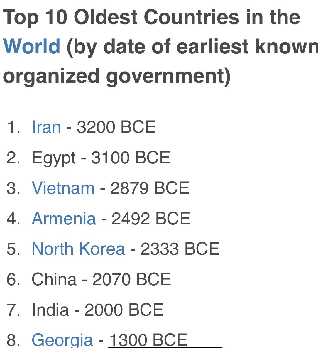 >>531765742>iran - 3200 BCEthis is not true, the Indo-Aryans did not penetrate the Iranian plateau until much later, as the Medes in the 2nd millennium before Christ, the "iranian civilization" you're talking about is eastern mesopotamian, i.e., Sumerian, which is NOT the same