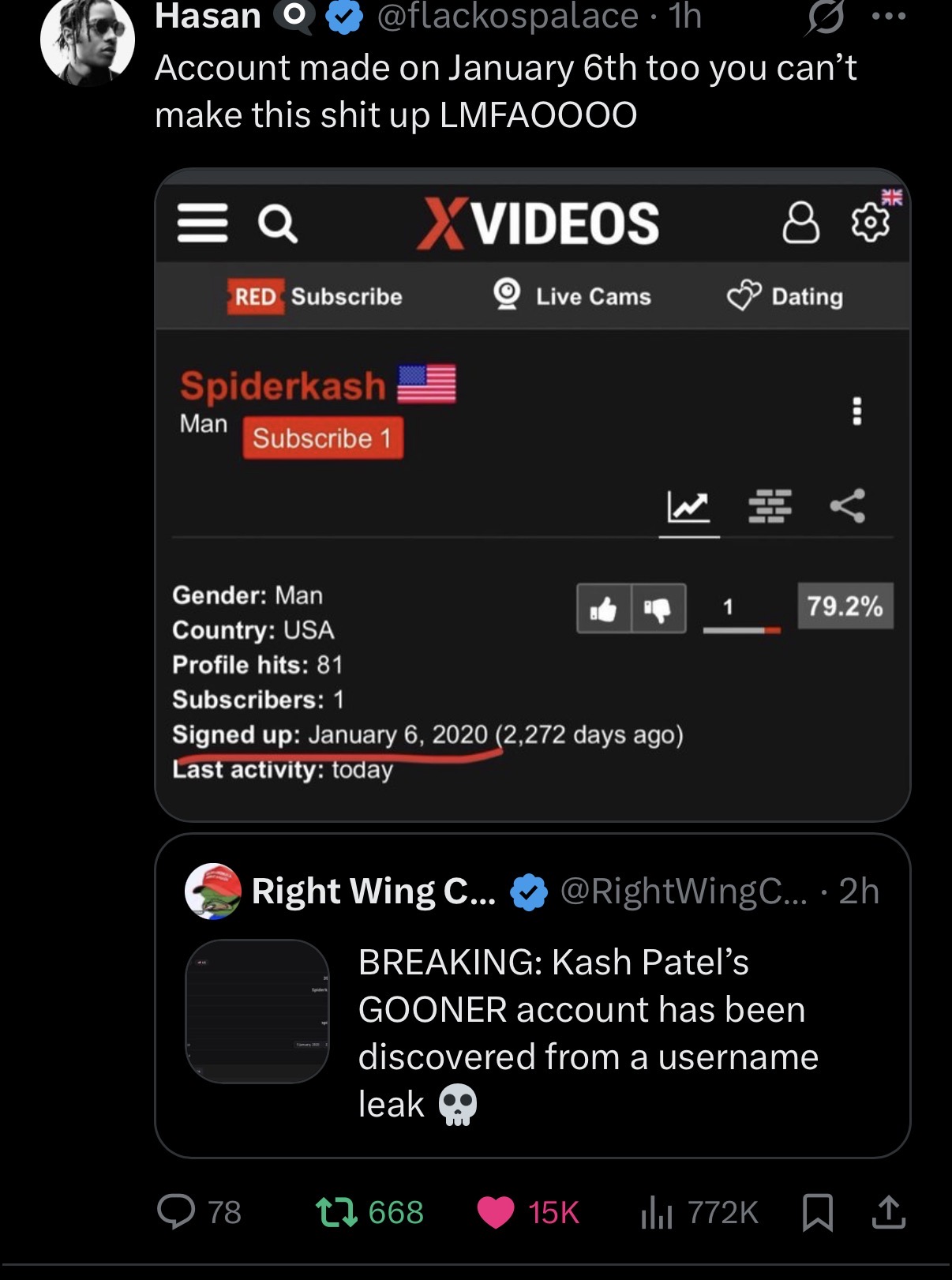 >>531787388what proof is there that this is kash patel's account?