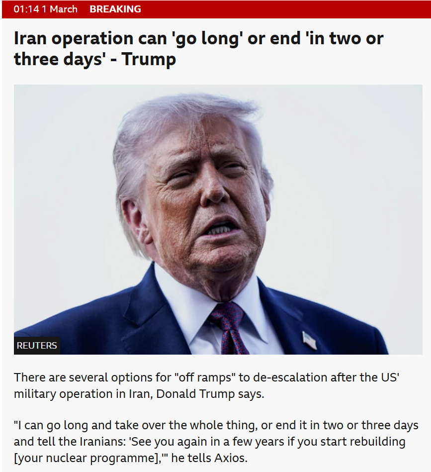 This is a shitshow of epic proportions. Everyone and their grandmother knew the inventors of the shaeds had asymmetrical strategies designed to counter none other than you, and going into that trap without a single sliver of innovation is such an abysmal failure. I was mad from day 2 of this. The Israeli assassination of the ayatollah and the civilian government during peace talks, that shit was just disgusting and gave you absolutely nothing, shit like that goes counter to US morals for a reason and will make peace talks impossible without massive, humiliation-tier concessions.
