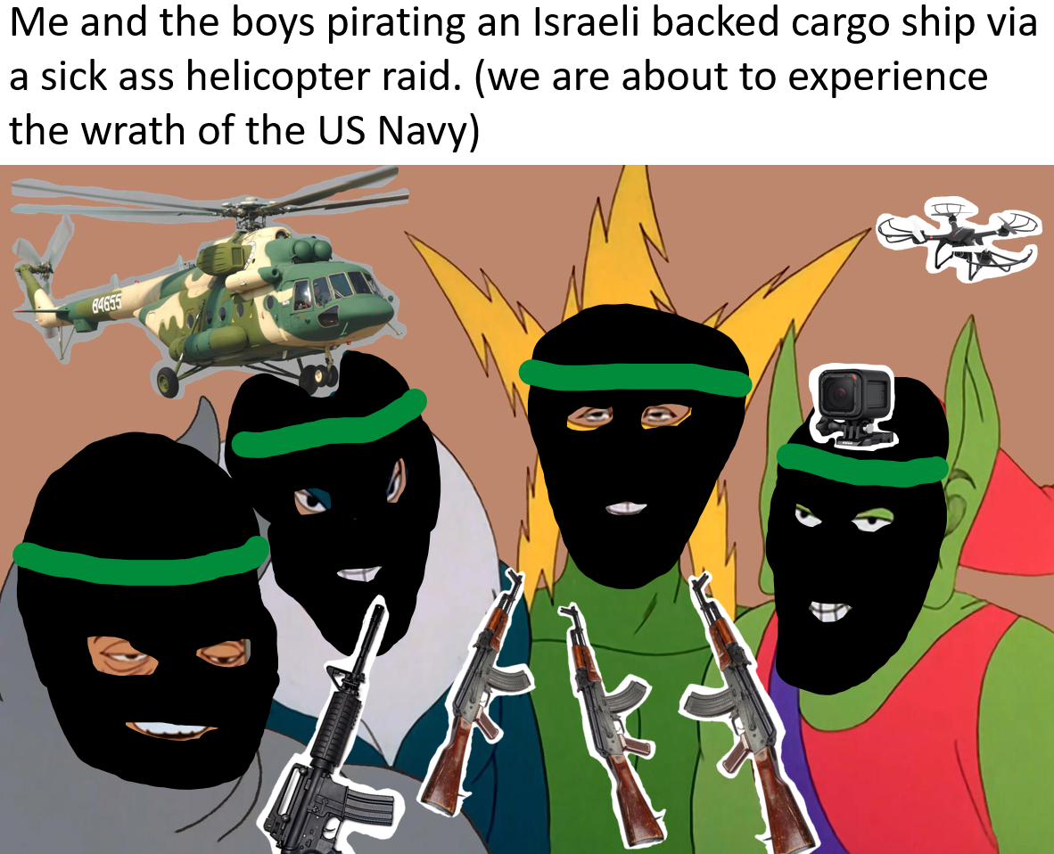 >>531813809>You can’t invade Iran from Mombasa Kek. You need to build up forces in a border. For months.>>531814520no kidding anon, you can't invade Iran from Central Africa. The challenge is getting men off the MEUs with all their gear and getting them somewhere near in-theatre so that they can sortie from like DXB airport or KWI airport to whichever LZ covered by a roiling mass of enraged Shia they're supposed to drop in at.