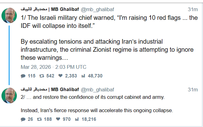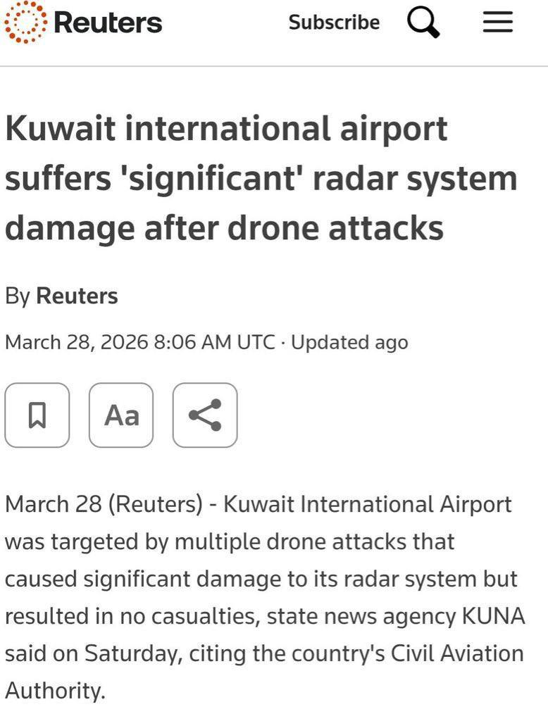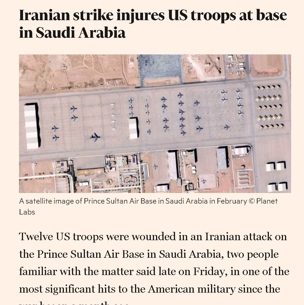 Previous: >>531811990>Time until the 48 hour Trump ultimatum expires: 9 daysTimeline:▶ Day 29>Israel now rationing missile interceptors>Trump extended his deadline for Iran to open the strait of Hormuz by another 10 days, to 6 April.>Iran says destroyed Ukrainian anti-drone depot in Dubai for assisting US military. 21 Ukrainian present>Houthis enter war. Missiles at "sensitive military targets" in "occupied Palestine" or Israel>The BAPCO refinery complex on fire in Riffa, Bahrain>Explosions can be heard in Abu Dhabi▶ Day 28>Ten U.S. soldiers were wounded in an Iranian attack at Prince Sultan Air Base in Saudi Arabia on Friday, according to the WSJ.>The USS George H.W. Bush aircraft carrier is expected to deploy to CENTCOM's area of responsibility, joining the USS Gerald R. Ford and the USS Abraham Lincoln in the region, according to CBS News>Patel pwnd by Iranian hackers>Israeli Chief of Staff: The IDF on the verge of collapse after 900 straight days of war>France's finance minister announces 30-40% of Gulf energy infrastructure destroyed>The Pentagon may up to 10,000 additional troops to the Middle East to give President Trump more military options, according to the Wall Street Journal>Growing suspicion in Israeli security circles: Syria, Turkey, and Iran/Hezbollah may be secretly colluding against Israel▶Kino NEW:https://files.catbox.moe/smmsfw.mp4https://files.catbox.moe/jv7tdp.mp4https://x.com/RoaaWarStudies/status/2037578330954719508▶Livestreamshttps://www.youtube.com/watch?v=4E-iFtUM2kk https://www.youtube.com/watch?v=TdcrT5OcS9c https://www.youtube.com/watch?v=53G-Oy4r6M4 ▶Telegram channelshttps://rentry.org/tgnews▶Israel Rocket Alertshttps://www.tzevaadom.co.il/en/▶Air Traffichttps://www.flightradar24.com/https://flightaware.com/livehttps://globe.adsbexchange.com▶Maritime Traffichttps://www.marinetraffic.com/https://www.vesselfinder.com/