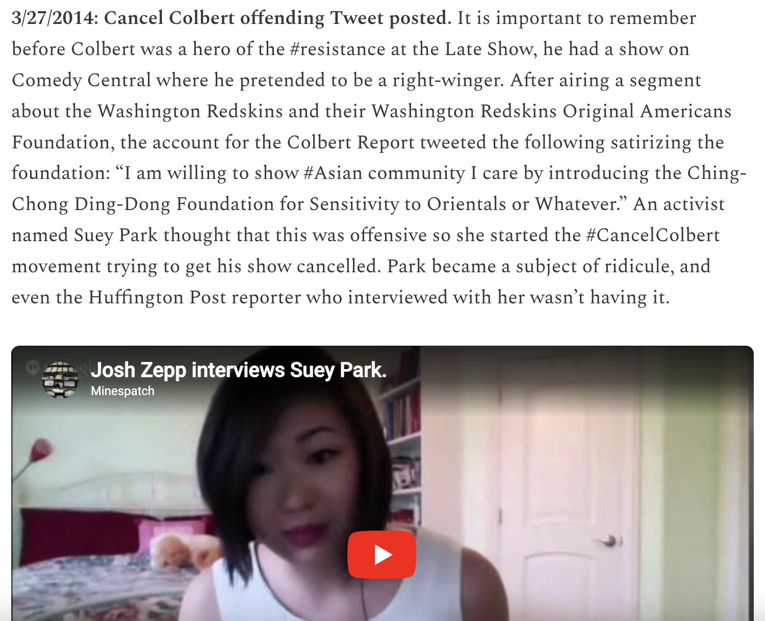 >>531820074Colbert 2014 controversy, end of right wing parody Colbert >>531820050Obama admin and co all conspired in that moment to create nonstop racial riots and madness to disarm and disabled police from that point on every few months for more than decade. Every few months there is a race riot and impotent police who refuse to do anything because they would be crucified.