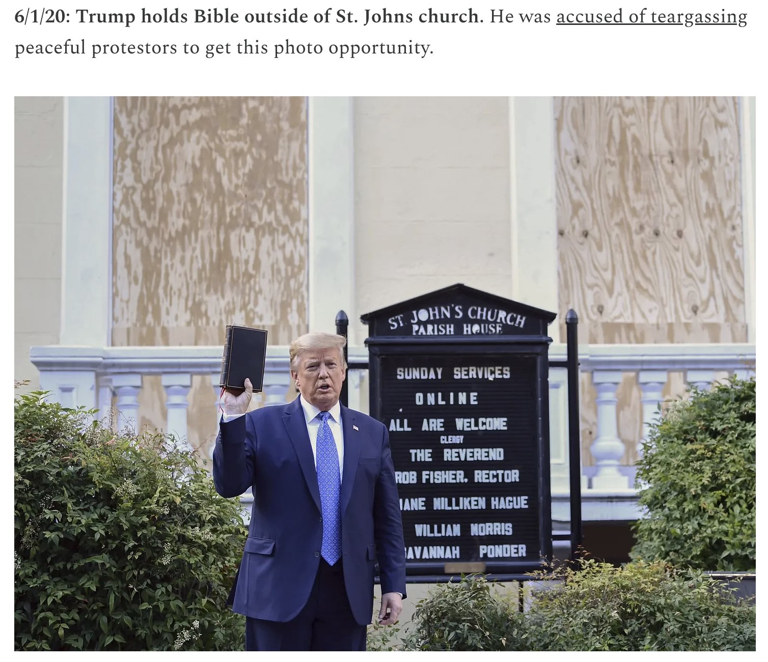 Trump calls for peace, religion, morality, and unity as the capitol is razed. Him waking to a defaced church is considered a violent act. >>531823401