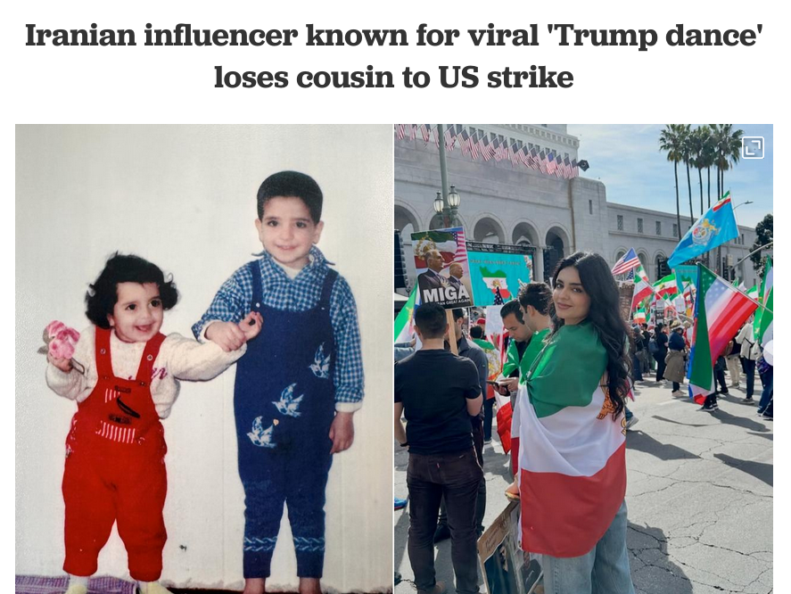 >>531852667meanwhile persian zoomettes are celebrating their brothers and cousins getting slaughtered by big american bombshttps://www.yahoo.com/news/articles/iranian-influencer-moon-rahimi-responds-163457460.html>An Iranian influencer, Mooné Rahimi, who posted a video on social media performing a “Trump dance” earlier this month, celebrating U.S.-Israel airstrikes on Iran that began on February 28th, has revealed her cousin has passed away.>Recently, Rahimi posted on social media a childhood picture of herself and her cousin, who died last week in the Iran war. In an emotional post, Rahimi blamed Iran’s ruling government for the death of her cousin and other people who died in the Iran-U.S. conflict.>“This is me on the left with my beloved cousin whom I lost last week. He would be alive if there was no Islamic regime, “Rahimi wrote on social media. “I’m writing this with tearful eyes.”>She further stated that thousands of innocent people, including children and pregnant women, died in the Iran-U.S. conflict.>The post followed renewed attention from the account Clash Report, which stated that Rahimi, who had supported airstrikes on Iran, now says her cousin was killed in the war.>However, Rahimi pushed back strongly against that characterization, disputing both the framing of the conflict and her stance. She continues to support the U.S. strikes even after the death of her family member.>“Where I said ‘in the war’? I always emphasize that this is not a war; this is a rescue mission,” she wrote.brvtal blackpill, we could nuke tehran and kill every single iranian cuckhold and persian zoomettes will justify it for a chance to bounce their pussys and assholes on mutt cock