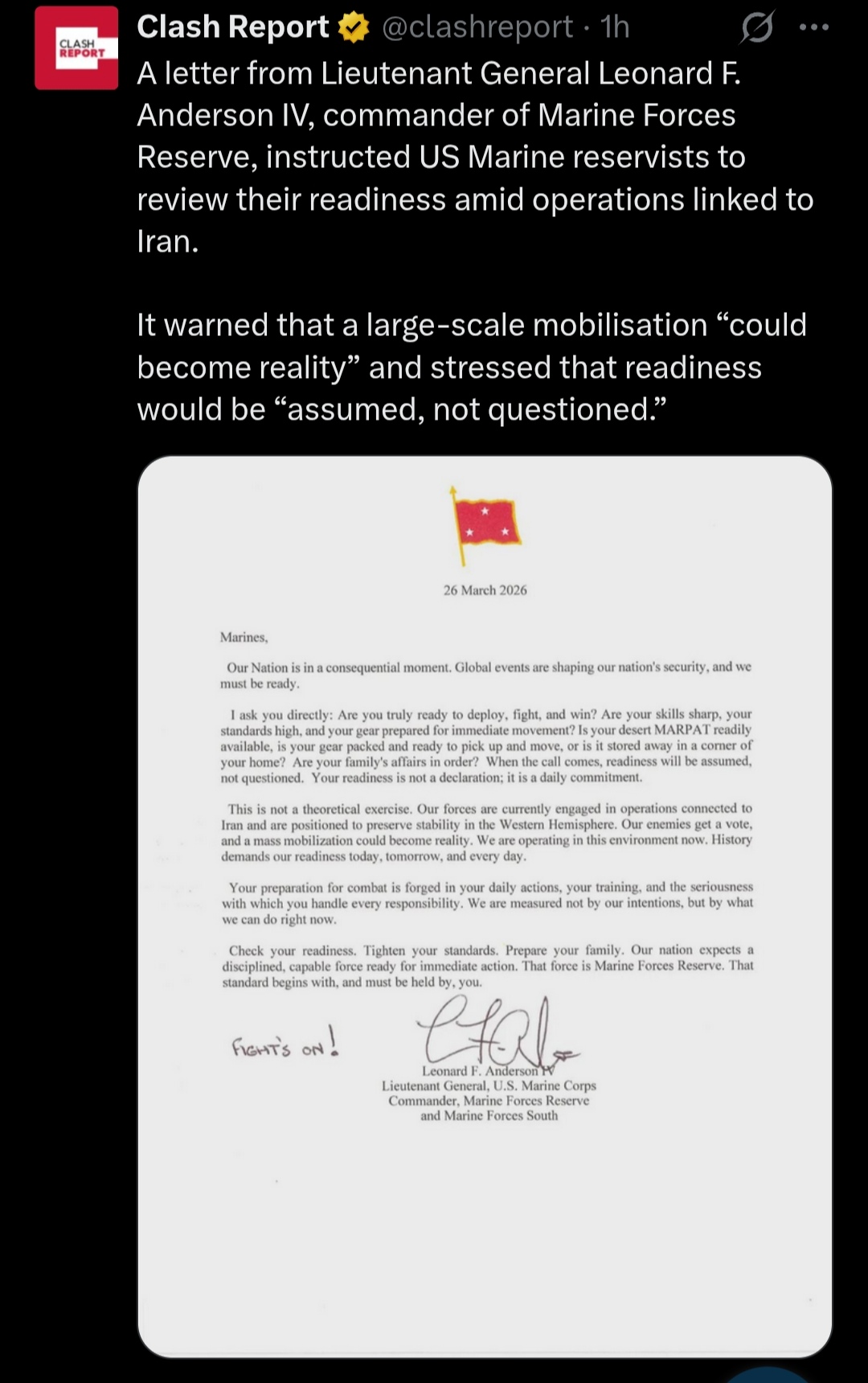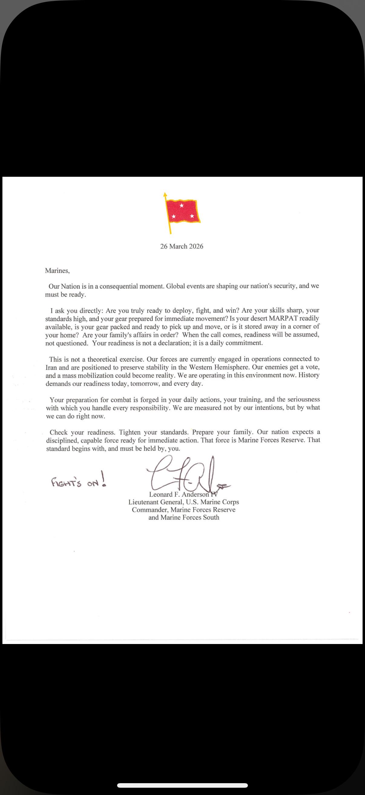>>531847287Apparently he sent this out the other day to his Jarhead Minions