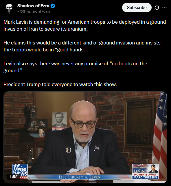 Microdick Levin is demanding ground troopshttps://x.com/ShadowofEzra/status/2038065935798370523