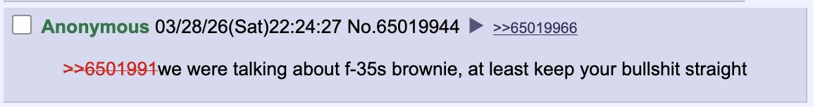 >>531865165>how reserved IranIt's lack of capability, not them being reserved. They just can't launch at the amount needed to back any threats thanks to allied air and drone work. So they go for a few peremogas if they can manage it like the E3.