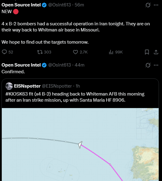 Update on this movement into the Middle East in support of Operation EPIC FURY.At least 63 flights completed with 11 more in progress.Origins:15-Hunter Army Air Field/Fort Stewart, GA (KSVN)12-Pope Army Air Field/Fort Bragg, NC (KPOB)10-Unknown (????)8-Cannon AFB, NM (KCVS)7-JB Lewis-McChord, WA (KTCM)5-Naval Air Station Oceana, VA (KNTU)4-Hurlburt Field, FL (KHRT)4-Campbell Army Airfield/Fort Campbell, KY (KHOP)4-Gray Army Airfield/JB Lewis-McChord, WA (KGRF)2-Harrisburg, PA (KMDT)1-MacDill AFB, FL (MCF)1-JB McGuire-Dix-Lakehurst, NJ (KWRI)1-Ramstein AB, Germany (ETAR)Destinations:23-Ovda Air Base, Israel (LLOV)19-King Abdullah Air Base, Jordan (OJKF)10-King Hussein Int'l Airport, Jordan (OJAQ)5-Unknown (????)5-Elsefina Air Base, Greece1-Ramstein Air Base, Germany (ETAR)1-Muwaffaq Salti Air Base, Jordan (OJMS) Key Observation:The common thread among these origins is the presence of special operations units at each base.KSVN-160th SOAR, 75th RangersKPOB-Army Special Ops Command, Delta Force, 3rd Special Forces GroupKCVS-27th Special Ops WingKTCM/KGRF-160th SOAR, 1st Special Forces Group, 75th RangersKNTU-Naval Special Warfare Group 2, DEVGRU (SEAL Team 6)KHRT-Air Force Special Ops Command, 1st Special Ops Wing, 24th Special Ops Wing, 492nd Special Ops Wing, 720th Special Tactics GroupKHOP-5th Special Forces Group, 160th SOARThese flights appear to be linked to the same mission based on their characteristics and communications.Assessment:Based on the above, I now assess this movement to be related to the movement of special operations assets and does not appear to be related to the announced movement of the 82nd Airborne. - TheIntelFrog (https://x.com/TheIntelFrog/status/2037646256286192113)