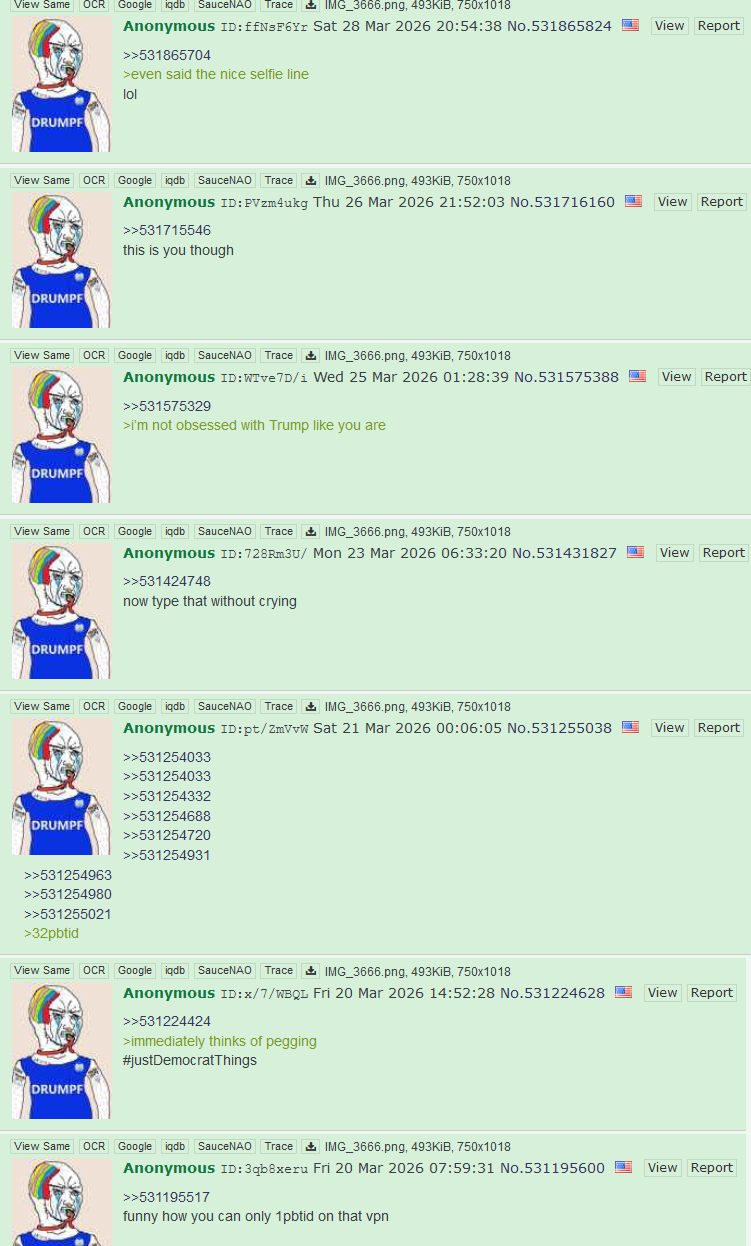 ALWAYS AWOOWE WON 2024 LOL (AND 2020)SNEED AND SEETHE SHILLSGOD PROTECT TRUMPDROP THE HAMMERSMASH THE PLACE TO PIECESPUNCH THE SCORECARDHANG THE RIGGERSJINX THE JABBERSFINISH THE WALLHOLD THE LINENEVER CONCEDEDRAIN THE SWAMPSINK THE CHINKBAN THE TRANSBE KAWAIIDEPOPULATE ELITESWE ARE SUPER ELITESIT'S OKAY TO BE WHITEJUSTICE FOR LORIKILL THE SHILLDON'T BAKE THE CAKEBE BESTHONOR ABEREMEMBER CHARLIEDEFUND THE FEDSALL FEDS ARE BASTARDS (except ICE and Border Patrol)STOMP THE TURTLESTRONGER TIMES NOWBETTER GET YOUR ACT TOGETHERLIGHT THE FUSEPLAY MINECRAFTEAT THE BURGERISRAEL IS NOT AN ALLY (except when killing Iranians!)THIS IS ULTRA MAGA COUNTRYBANKRUPT THE BANKS!WOLFGIRLS FOR TRUMPERS!DUM AND GAY IS NOT OKAYKEEP POSTING THAT FUCKING RACCOONDEPORT THE HORDE!CHRIST IS KINGALLEY CATS FOR TRUMP!FIGHT FIGHT FIGHT!TRUMP FOREVER!7/13 WAS AN INSIDE JOBBETTER WEIRD THAN QUEERALL GROYPERS ARE GAY FEDSPLUG THE LEAKERSRAKE THE LEAFSESCALATE TENSIONSMARS CHUDS UNITEHEIL SYDNEY SWEENEY'S GOOD GENESDONROE DOCTRINEUNLEASH CHANGBIG DICK BED CHEM MAGA ENERGY!>>531861368>>531861534>>531861549Good awoovening!>>531861573Just means they're losing!>>531861596>Haven't you learned your lesson the 100 other times you've done it?Yes.We learned to bomb harder.