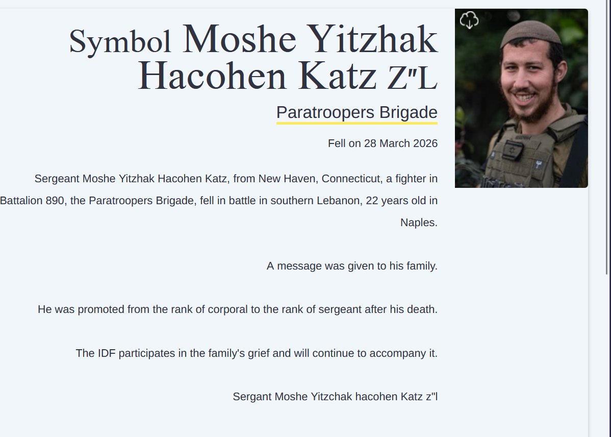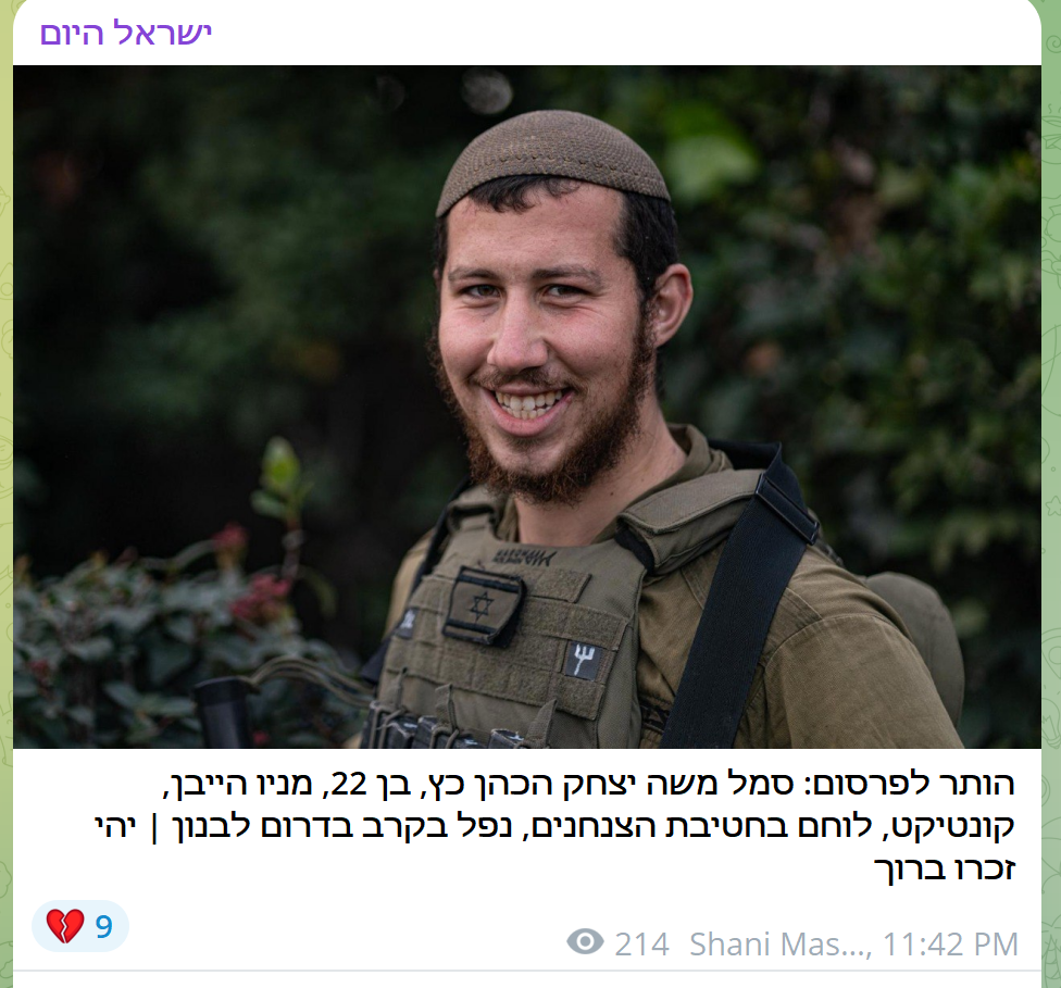 sad news guys:Released for publication: Sergeant Moshe Yitzhak HaCohen Katz, 22, from Connecticut, fell in battle in southern Lebanon