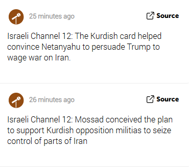 >>531873077>then why did kurds refuse to go to war with iran?Do the opposite question. Why would Kurds go to war with Iran? - The Syrian Kurds were betrayed by America and largely destroyed by the Turks and the Syrian government (aka Al-Qaeda in Syria).- The Iraqi Kurds are divided between the Talabani (pro-Iran) and Barzani (pro-Turkey) clans. Neither is likely to go to war for Israel.- The Kurds in Turkey are making peace with Erdogan and starting any trouble would just cause chaos in Turkey.- The Kurds in Iran are probably fully subverted by the CIA and Mossad, and are therefore useless.