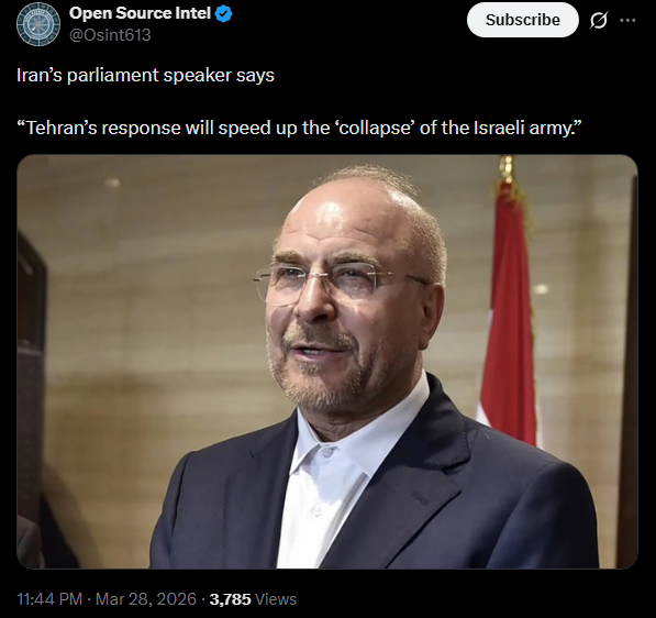 >Iran says the United States has until March 30, 12:00 p.m. (Tehran time) to condemn the bombing of Iranian universities. >If it does not, Iran will carry out strikes against multiple American universities in the Middle East.TICKTOCKMIGGERS