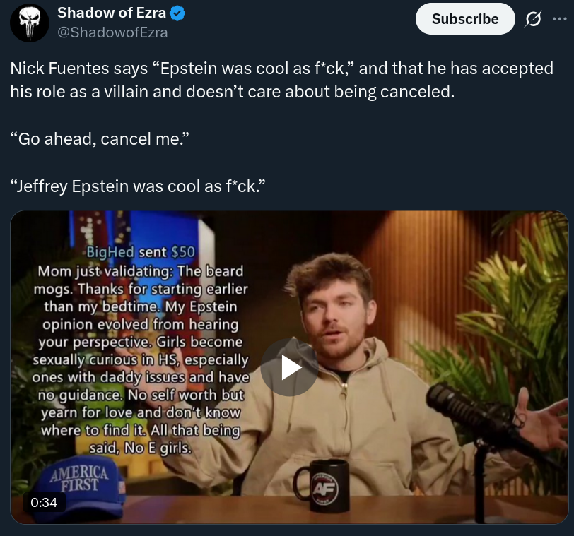 >>531870956then why aren’t you posting images>>531870987epstein was on your side, tranny