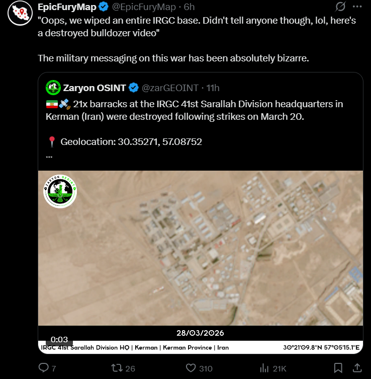 Trump reminded earlier on Truth Social everyone to watch the great Mark Levin on Fox tonight. And what was great Mark Levin's rant about? Putting boots on the ground, screaming how Trump never made a campaign promise not to put boots on the ground. At the same time the Pentagon leak to WaPo about a massive ground operation that could last couple of months. And yeah if that Operation Final Blow does not deliver the final blow, Trump won't just admit defeat in his objectives for the war. It can never have been in vain. It will be sunk cost fallacy and pride making the decisions.