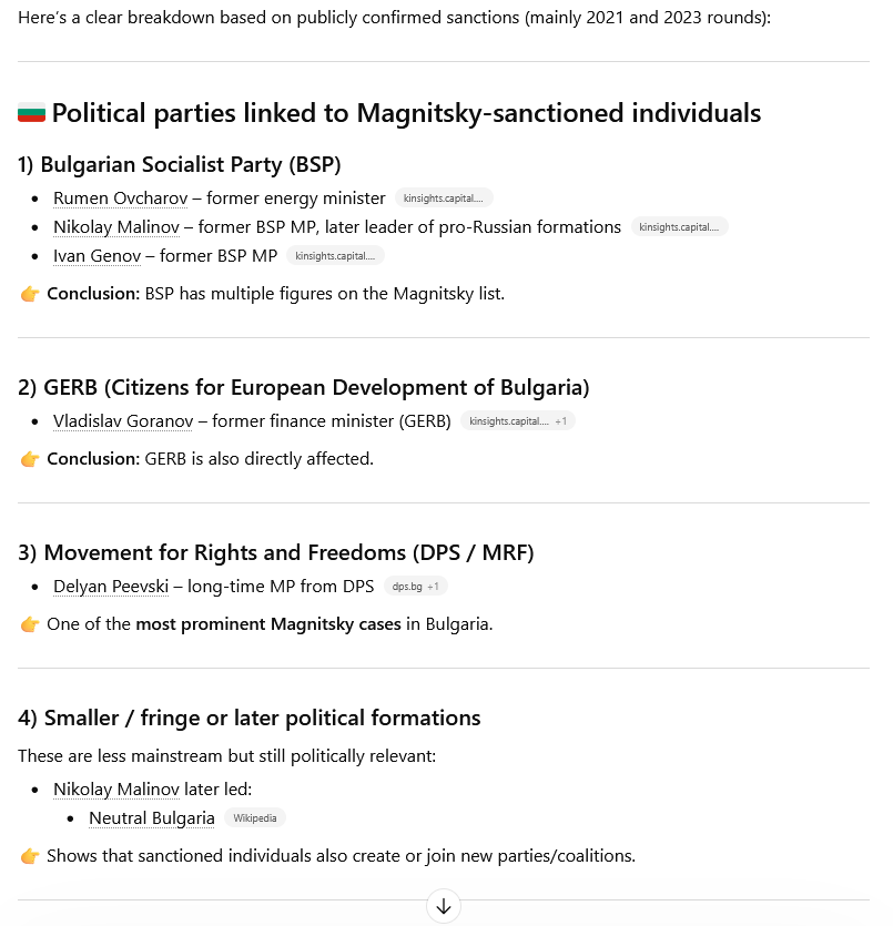 >>531894396>Any other redpillsi've put together a compilation, some are more interesting than others - https://rentry.org/beg2024_laundry>bojkov and petrov i haven't been keeping up >bojkov he created a political party, maybe in the hopes of gaining political immunity, but it didn't go anywhere- https://bg.wikipedia.org/wiki/%D0%93%D1%80%D0%B0%D0%B6%D0%B4%D0%B0%D0%BD%D1%81%D0%BA%D0%B0_%D0%BF%D0%BB%D0%B0%D1%82%D1%84%D0%BE%D1%80%D0%BC%D0%B0_%E2%80%9E%D0%91%D1%8A%D0%BB%D0%B3%D0%B0%D1%80%D1%81%D0%BA%D0%BE_%D0%BB%D1%8F%D1%82%D0%BE%E2%80%9Che was threatening to testify against boyko, but i don't know how his trials went / are going >Petrovlast i heard he was in serbia, but wiki say they shot 'em - https://en.wikipedia.org/wiki/Aleksei_Petrov_(businessman)