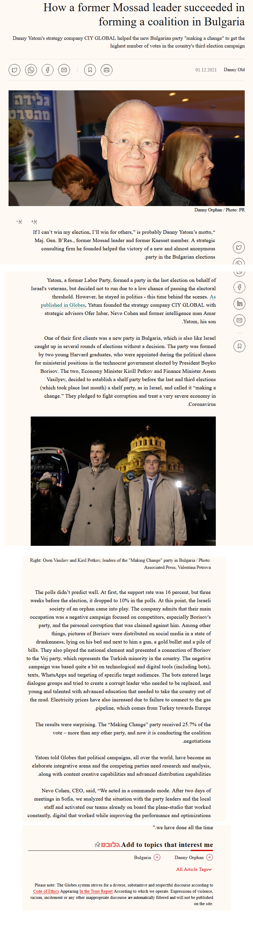 >>531889546ESG = blackrock. Radev is kowtowing to Blackrock through his proxies while LARPing as a populist. He literally is a progressive and the party name is not a troll move. We're about to get PPDB on steroids. That has always been the plan and his pretend-patriotism is a misdirection.The second is the ex-director of Mossad bragging about rigging our election to a major Israeli publication, fresh out of the oven when Radev made them a thing. Wouldn't have happened without his personal request and help as a president. The "ala-bala" in question.>>531889738direct hebrew link http://archive.is/3dyH0https://www.globes.co.il/news/article.aspx?did=1001392959