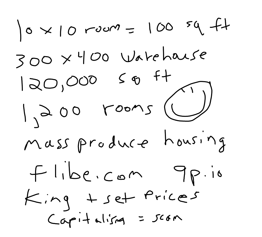 if we mass produce 10 room per white maleno one else have moneymight be perfect country