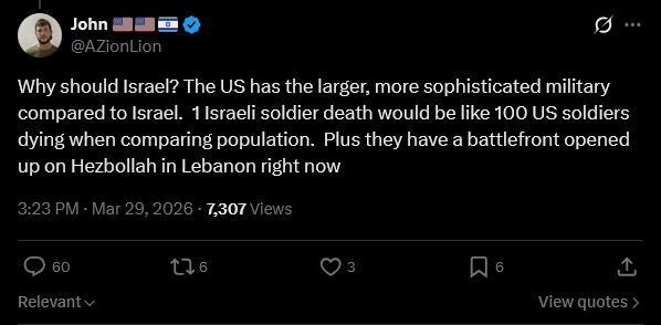 >>531918909Obviously this is not a final policy but in the event we have to do the ground thing (which we want to avoid) understand if Israel won't send troops to help the US with it you're not going to have any friends left here...