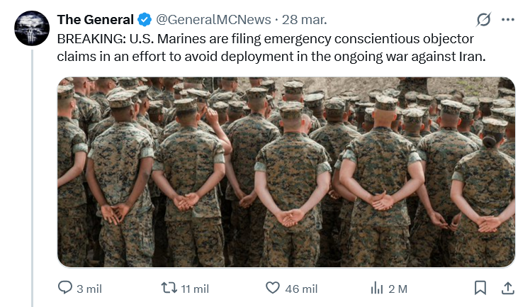 Marines are fucking scared of getting butchered by Iran, same thing happening with israeli paratroopers shitting their diapers at the thought of getting sent to Lebanon