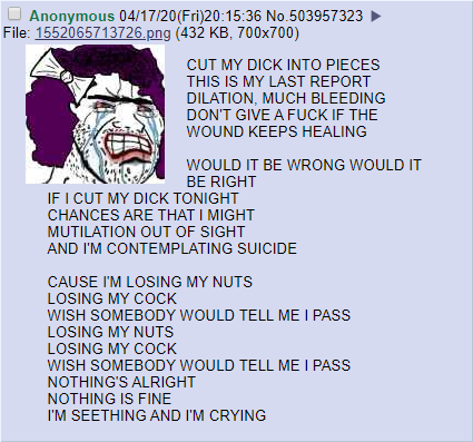 holy shit, troons are crashing out hard today!i have a trans-related question...what if you've had your dick cutoff and had it stuffed up your taint BUT then you detransitioned and had a frankenpenis crafted and sown onto where your dick used to be? what does that make you? a pooner, a troon, non-binary perhaps?
