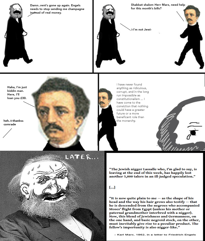 >>531988969Communists refuse to shut the fuck up and move on so they still need to get told to be less annoying.>>531988968Read any account from the time.Lasalle was a cool guy everybody liked while Marx was a two-faced resentful fag who had autistic fits over the slightest disagreements.