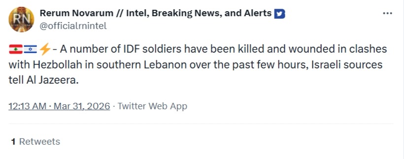 A number of IDF soldiers have been killed and wounded in clashes with Hezbollah in southern Lebanon over the past few hours, Israeli sources tell Al Jazeera.If Israel is reporting this then its a lot worse than a few