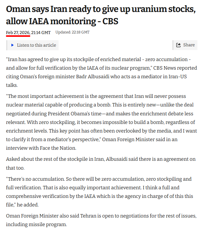 reposting because it was at the end of the other thread does this general agree kushner and witkoff just fuckin made up the 60% enrichment thing because i think its either that or they uncritically repeated irgc boasting from those post midnight hammer pre epic fury meetings, because apparently that private meeting between kushner witkoff and iranian envoys is like the only further push we used to justify epic fury, and Gabbard testified our intelligence said there was no active effort to rebuild between midnight hammer and epic fury. So in my mind, either jared + witkoff lied, or they are just parroting stupid empty boasts from the irgc uncritically and trump decides to listen to them instead of our intel