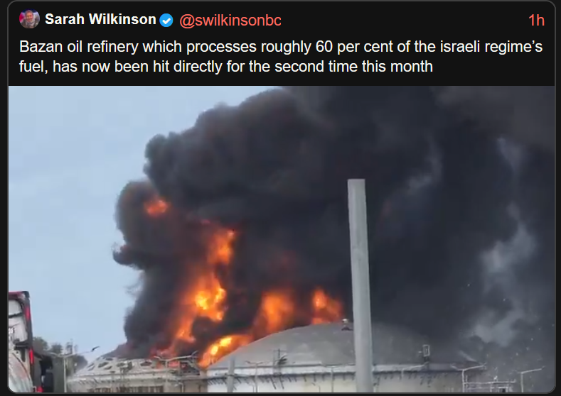>Iran hits Haifa refinery, which is now on fire