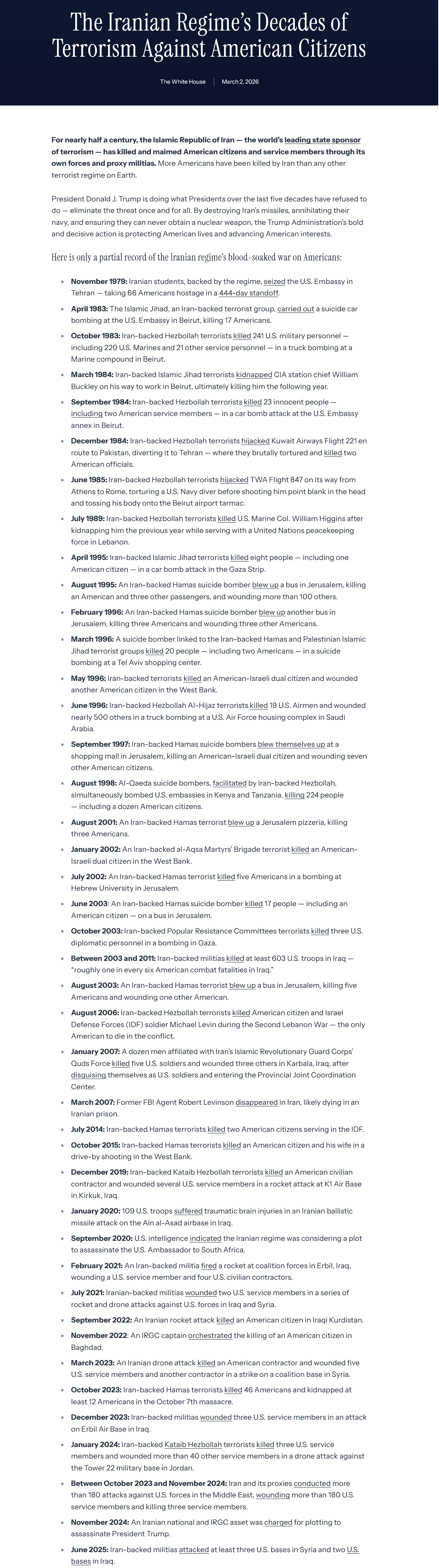 >Leavitt on Iran : "Some of the previous leaders are now no longer on planet Earth because they lied to the US and they strung us along in negotiations, and that was unacceptable to the president, which is why many of the previous leaders were killed"'And these guys are now ordering military psychological operations to work with their embassies around the world to salvage their image. That is an impossible task for the PSYOP divisions. You literally can't spin this retarded administration, they are fundamentally flawed human beings, and Iran and partners do not need to spin lies, they just have to put a microphone up to the administration and let the world see what the fuck these people are saying.