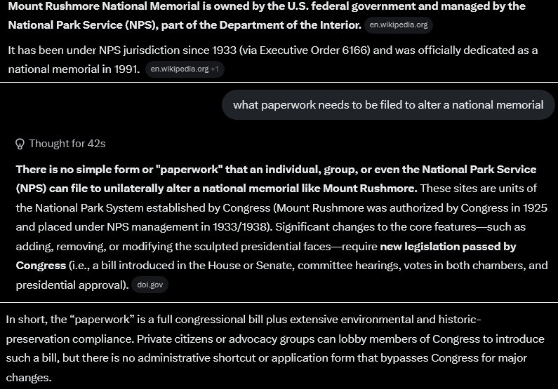 Trump's face on Mt Rushmore would be an excellent 250th bday gift from The People to the President.>NPS only has control of it because of an executive order>congress can do the whole thing>Elon can pay off the Sioux debt