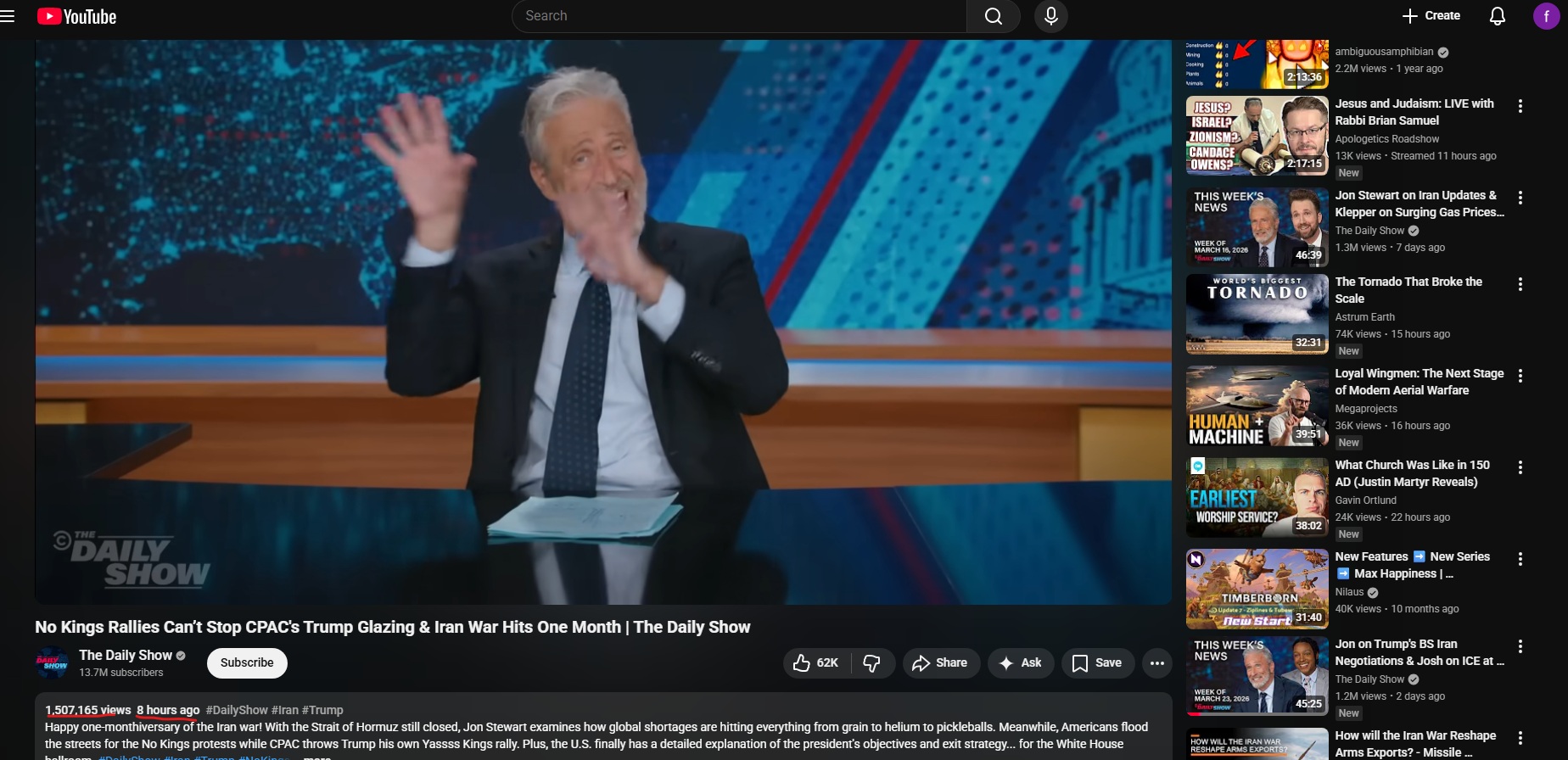 daily show got 1.5m views in 8 hourshttps://www.youtube.com/watch?v=YKNYm6DpXs4midterms are lost