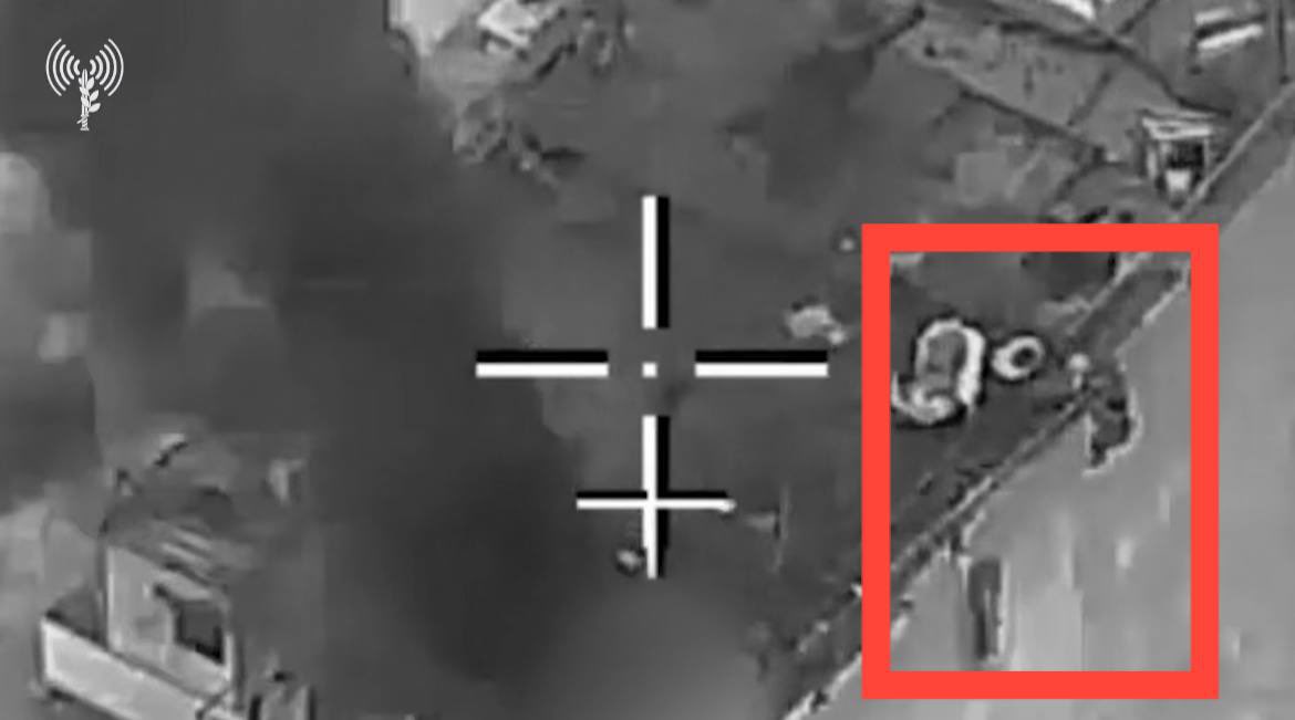 >A bizarre video from the Israeli army showing the targeting of a Zu-23 anti-aircraft gun atop a tower near Tehran's Revolution Square using two suicide drones!>The strangest detail in the video, seen in the second drone, is that at least two anti-aircraft operators are positioned on the edge of the tower out of fear or due to the blast wave, and in the final moment, one of them falls from the tower....>These are the very ones who were firing down at the people from atop the towers.