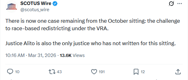 Sam Alito is writing (or has written, more likely) the opinion gutting VRA. My guess is the dissenters are trying to hold it up as long as possible which is retarded. Alito should read his opinion with a note saying dissents to follow (this has happened before, by the way).
