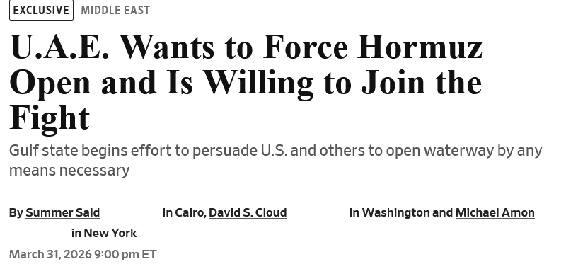 Previous thread: >>532095086▶/pig/ polls:>https://strawpoll.com/wby5QbkQdyA/results>https://strawpoll.com/05ZdzrBKGn6/results>https://strawpoll.com/e7ZJaqzEYg3/results▶RECENT:>The moment an Iranian ballistic missile impacted a U.S. base on March 30th.>https://files.catbox.moe/ougrmx.mp4▶ Day 33*>Smoke is rising from the U.S. Fifth Fleet base in Bahrain.>Explosions in Dubai.>UAE wants to force the Strait of Hormuz open and is willing to join the fight, according to the Wall Street Journal.>UKMTO reports that an oil tanker has been struck by a projectile 17 nautical miles north off the coast of Doha, Qatar, causing damage to the hull above the waterline.>US President Trump will give an address to the nation tomorrow (APR 1st) at 9 PM ET to provide an "important update on Iran", according to the White House.>Dubai oil is $128 indicating US oil markets are using paper to suppress their price and limit economic impact.>Trump: "I would say we would leave within 2 weeks... maybe 3? (Gary?)>Several explosions in Bahrain.>$1.75 trillion added to the US stock market today, 31 March.>3 more dead IDF soldiers in Lebanon.▶Oil:>Dubai Crude $128>WTI $102>Brent Crude $105>Do not trust any "happenings" without link/proof▶Thread Theme:https://files.catbox.moe/luzus6.webm▶Kinohttps://files.catbox.moe/20lpu8.mp4https://files.catbox.moe/jv7tdp.mp4▶Live-streams:https://www.youtube.com/watch?v=4E-iFtUM2kk [Open]https://www.youtube.com/watch?v=TdcrT5OcS9c [Open]https://www.youtube.com/watch?v=53G-Oy4r6M4 [Open]▶Telegram channelshttps://rentry.org/tgnews▶Israel Rocket Alertshttps://www.tzevaadom.co.il/en/▶Air Traffichttps://www.flightradar24.com/https://flightaware.com/livehttps://globe.adsbexchange.com▶Maritime Traffichttps://www.marinetraffic.com/https://www.vesselfinder.com/▶OP:https://rentry.org/PIGOP