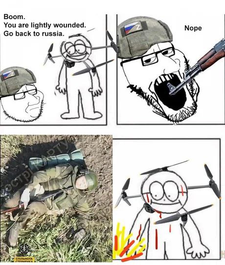 >>532102349What Putin now has left are not soldiers.Imagine the average citizen stuffed into a uniform, given the most basic "training" by a sadistic brute, being carted to the fuck of nowhere where he meets more disoriented SOLs like him, hers that NCOs call them "meat" and then gets robbed blind; finally he is ordered on a suicide mission with no maps or any idea about the general situation. By the time he arrives in no man's land, 3/4 of his squad are dead. Next drone wave, he and another guy are the only survivors. He was told that Ukrainian nazis will make a tropy of shis skull when they capture him, and so he does the only thing that makes sense to him in this situation:He shoots his rifle, once, and in the only way he possibly can so that it is sure he does hit what he wants to hit.Most of them die before seeing a single Ukrainian soldier these days.Picrel gives a good impresion of present state of Ukrainian vs Russian personnel.