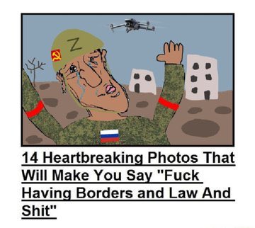 >>532109207disgusting stupid peopleimagine seeing this shit going on in ukraine every singly day directly around you and still supporting the invaderliteral bug people that should be treated and crushed like bugs>>532110600attacking enemy combatants isn't a warcrimethese are stragglers that remain after failed russian assaults against ukrainenow if you have soldiers cutting off limbs, the scrotum or burning patterns into captured opposing soldiers - that is a warcrimeor striking residential buildings and apartment complexes and maternity wards and childrens cancer hsopitalsthat is a warcrimekilling a zigger straggler out in no mans land is not a warcrimeit is a lawful act of war in a war started by the kremlin against ukraineyou can repeat your bullshit as often as you like, the reality remains thus