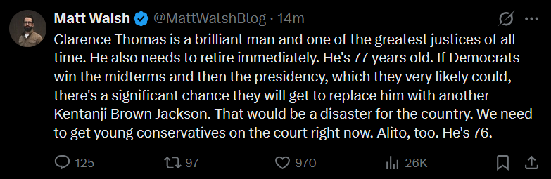 dunno, I feel like Clarence Thomas still has some life left in him. This isn't an RBG situation in my eyes