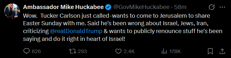 Trump's good friend and homeland security advisor, THE GREAT ONE, has spoken.Gas and grocery prices must remain high until all of Israel's objectives in Iran are accomplished.