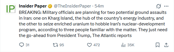 I hope so. Trump needs some sort of visible show of force to impose his will on the Iranians otherwise the whole thing looks stupid. It doesn't matter how much shit the US and Israel broke in Iran if the Iranians are not forced to at least in some way capitulate.