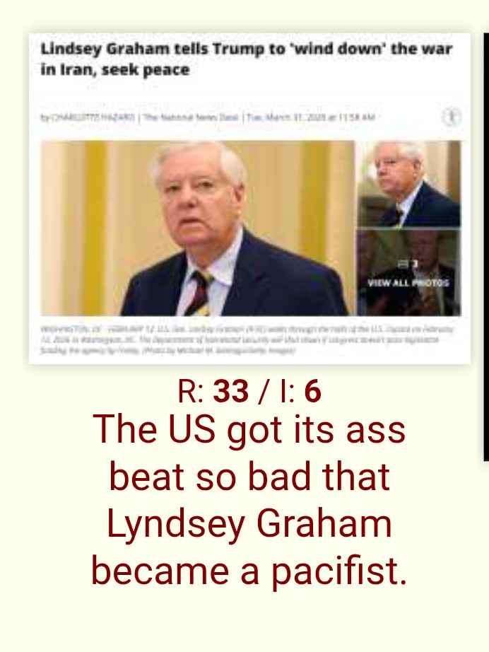 >>532125288>Trump has fucked everything up so badly that Lindsey Graham is willing to sacrifice the Iran War he has desperately wanted since he was a small childDAMN SON
