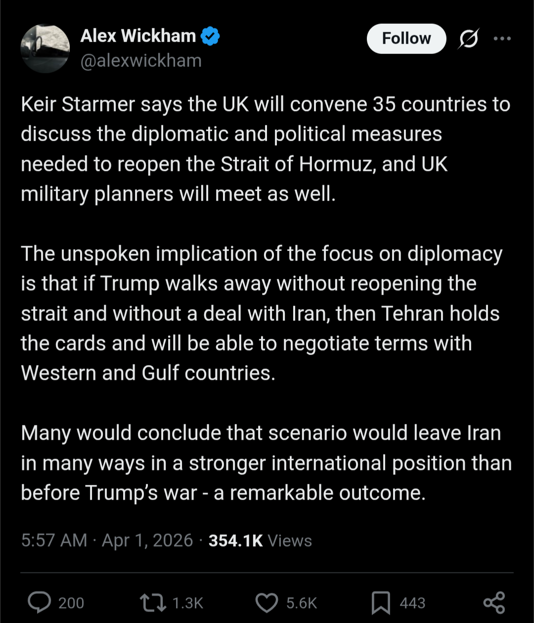 I don't care to listen to that faggot speaking but is it true that Keir Starmer said this mentioned in the picrel about re-opening the strait but only spoke of diplomatic and political means? because that's pretty true if big