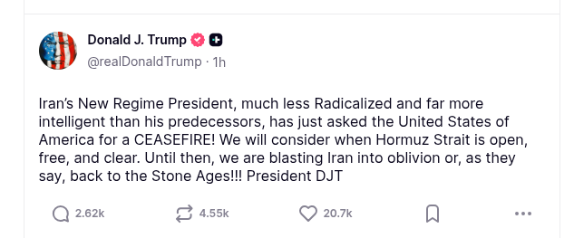 >>Iran begging for ceasefire deal