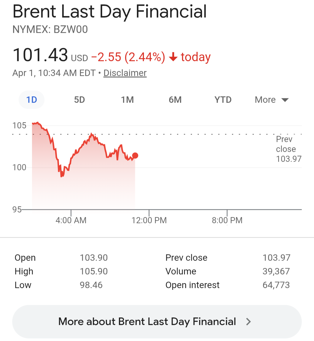 >Brent Crude $105