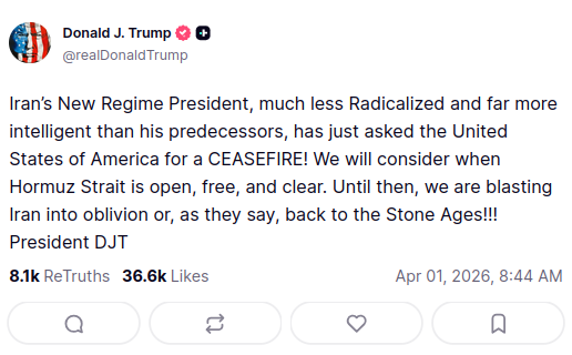 Oh sheeit, we're getting a ceasefire and Iran is BEGGING to make a deal. Tonight's victory speech should be lovely.