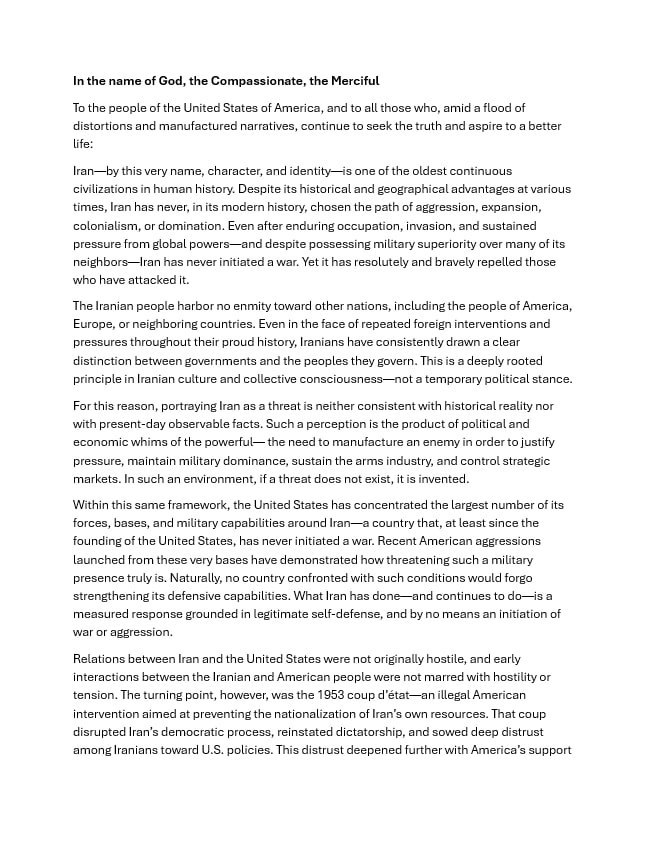 >Pezeshkian wrote a wall of text>no amerimutt will ever read it because of their crippling adhd or inability to comprehend the written wordUtterly meaningless!Everything is meaningless.